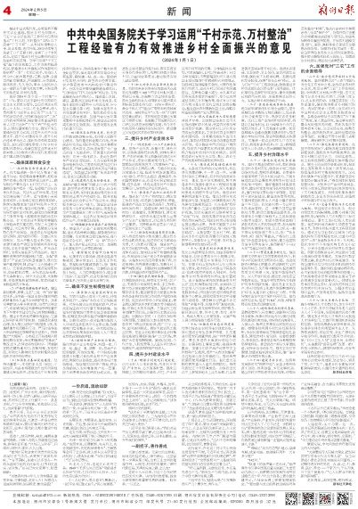 中共中央国务院关于学习运用“千村示范、万村整治”工程经验有力有效推进乡村全面振兴的意见