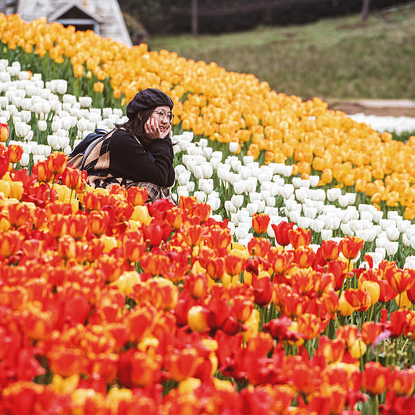 3月9日,在位于重庆市长寿区的长寿湖景区,游客在郁金香花海中赏花拍照。近日,位于重庆市长寿区的长寿湖景区郁金香盛开,成为游客踏青赏花游玩的热门景点。长寿湖景区从2014年开始每年举办郁金香花展,吸引了大量游客观赏。 新华社记者 唐奕 摄