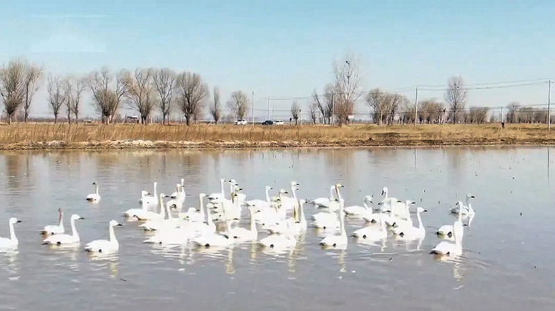 随着天气转暖,又到了候鸟北迁的季节。在应县大黄巍乡,刚刚完成春浇的农田里,成群的大天鹅在水面嬉戏觅食,构成一幅和谐的生态画卷。 丰丽佳王文甫摄