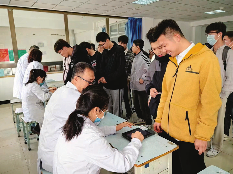 近日,怀仁市2024年高考体检工作启动。图为在怀仁市医疗集团人民医院体检现场,来自怀仁一中、云北、仁德及招办社会招生校区的学生们正在进行体检,参加体检工作的医务人员佩戴工作证,严格按照高考体检工作纪律和执行标准,认真仔细地为考生进行内科(血压)、外科、五官科(视力、色觉、听嗅)、检验等项目的检查。 王晓丽摄
