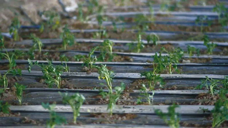 在朔城区下团堡乡霍庄村的牧乐森林农场,种植户正在移栽西红柿苗,整个大棚共有两千多株苗子,预计再有3个月就可以成熟上市了。眼下正是西红柿苗移栽的关键时期,种植户有条不紊地进行打孔、栽苗、埋土、压实等作业。技术员裴彩虹介绍:“栽的时候不能太深,把苗子固定住,浇水必须浇透,浇水两到3天后,浇一种生根剂和一种根部防腐剂,每7天浇一次,连续两次,在高温时期,给它缓苗避光。” 刘晓广李妍 闫红祥 摄