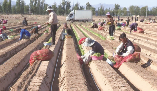 贺兰县泽瑞祥种植专业合作社总经理唐学介绍:“今年我来新岱岳村种植大葱,这边的气候、土质特别适合种大葱。现在正是种大葱的期间,预计每亩生产大葱13000-15000斤。每年每亩可以收入1万元左右。生产销路主要向山东、潍坊、商丘等地销售,订单模式种植,让收入更加有保障。”