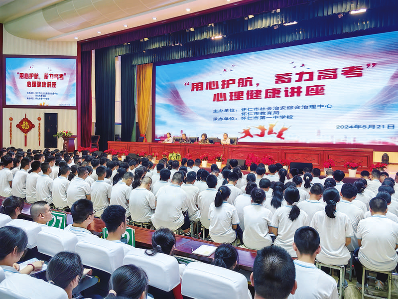 为缓解高考考生心理压力,帮助考生轻松备战高考,护航青少年健康成长,由怀仁市综治中心、怀仁教育局主办的主题为“用心护航,蓄力高考”的心理健康讲座在怀仁一中举行。 王晓丽闫晓倩摄