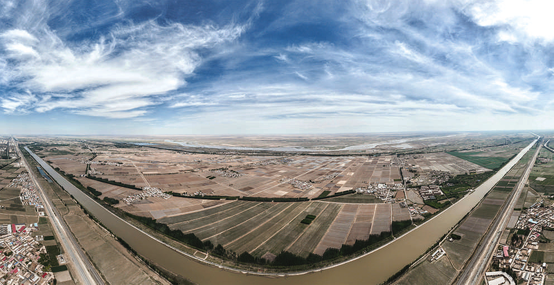 这是5月26日在巴彦淖尔市临河区拍摄的农田。内蒙古巴彦淖尔市位于黄河“几字弯”北端,拥有富饶的河套灌区,引黄灌溉面积达1000多万亩。近年来,在引黄灌溉工程支撑下,河套灌区年均粮食总产量达60亿斤以上。 新华社记者贝赫摄