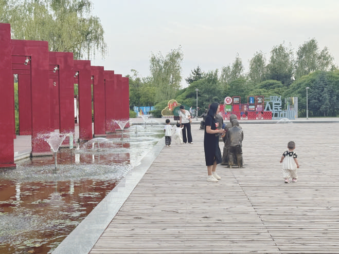 正值初夏时节,朔州市人民公园的喷泉与莲花相映成趣,市民们在公园散步健身,放松心情。近年来,我市不断推动公园建设,群众的幸福感、获得感大幅提升。