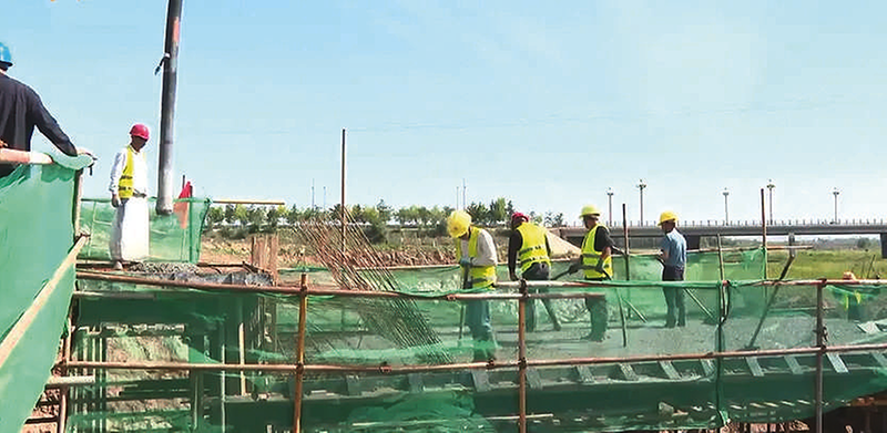 在永定河流域恢河南邢家河村段综合治理工程的施工现场,工人们正在紧张有序地进行沿河观景桥的顶板混凝土浇筑作业,让市民群众能够在水清河畅岸绿景美的自然环境中近距离感受水生态治理成果。据了解,当地观景桥从河岸延伸到河中心,建成后广大市民可以站在最佳位置欣赏河上以及河岸两侧的迷人风光。同时,还有配套建设演绎广场、喷泉、生态护坡等景点,为市民提供打卡休闲最佳场所。