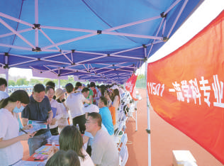 6月16日,考生和家长在咨询会上与高校招生老师交流。当日,2024年上海市普通高校招生志愿填报现场咨询会在上海建桥学院举行,全国近百所高校选派招生老师,与考生、家长面对面交流,答疑解惑,提供权威信息和咨询服务。 新华社记者刘颖摄