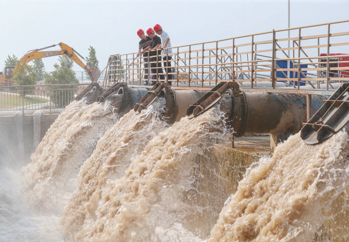 6月15日,在河南省兰考县三义寨引黄总干渠渠首右岸黄河滩区,三义寨提水泵站将黄河水抽入商丘干渠。目前,受晴热少雨等因素影响,我国北方多地出现旱情。正值“三夏”关键期,各地积极应对,多措并举,全力开展抗旱保苗工作。 新华社发 李恒摄