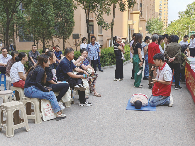 近日,市红十字会走进北旺庄街道滨河中心社区开展应急救护知识技能普及宣传活动。活动现场,市红十字会工作人员发放了“三救三献”宣传资料,并用通俗易懂的语言向社区居民讲解心肺复苏、海姆利克急救法等重点急救内容。 刘淑花摄