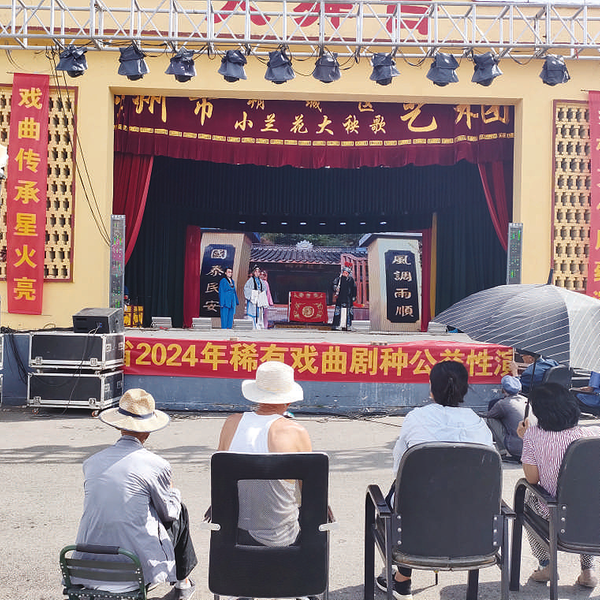 图为8月4日,朔城区张蔡庄乡高庄村村民在村委大院看大秧歌戏。近年来,我市持续实施群众文化惠民工程,广泛开展“免费送戏下乡”、“文明之光”文旅志愿服务文化品牌活动等,使惠民工程的覆盖面更广、演出质量更高、受惠群众更多。