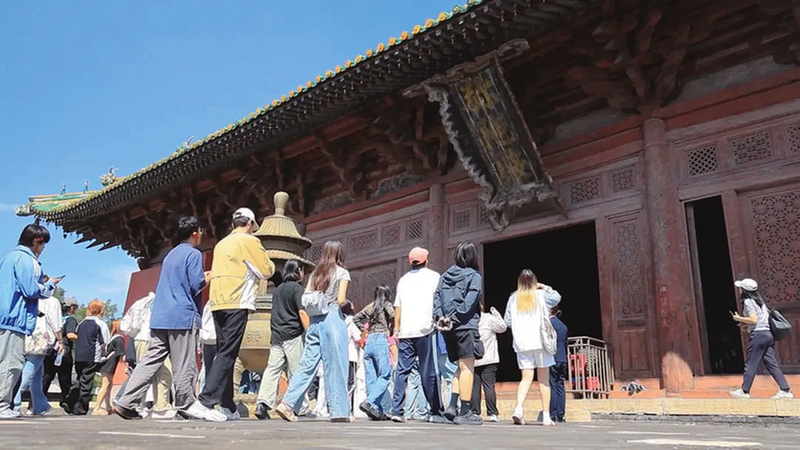 朔州市文化和旅游局资源开发科科长邸世文说:“游戏《黑神话·悟空》带动朔州景区游客成倍增长,崇福寺日均接待5000人次,应县木塔日均接待10000人次以上。现在,我们文物类景区全部开放,应县木塔由原来的下午六点半延长至晚上八点闭馆,崇福寺由下午五点延长到六点闭馆,同时开展‘微笑服务’,提升旅游服务质量,让游客的‘打卡游’变成‘深度游’,让‘悟空效应’变成长效流量。”
