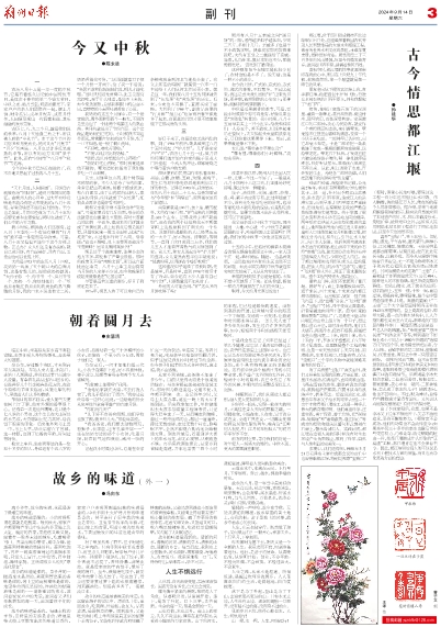 出站时一抬头,发现一轮硕大的明月,正高挂在耸入天际的群楼之巅。一切都在变,小城在变、人在变、过节的方式在变、交通工具在变,一切都变化得如同这风驰电掣的列车,唯有这“江畔何人初见月?江月何年初照人”的明月年年岁岁不变。