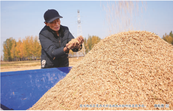 “看这水稻的长势,今年又是一个丰收年!”在神头镇下西关村的千亩水稻种植基地里,今年盛夏,种粮大户石云宝指着水稻对周围人乐呵呵地说。石云宝从2016年在神头镇盐碱地里尝试种植水稻,经过多年改良试验,培育出优质高产的稻花香系列水稻亩产达到650公斤以上,让“沉睡”的盐碱地变成了生机勃勃的良田。经过近几年的发展,朔城区水稻种植已从最初的50亩试验田,发展到了现在的2650亩,培育出稻花香、吉宏6号等高产优质品牌稻米,总产量从4万斤增加到344.5万斤,地域也由朔城区神头镇、滋润乡的8个村推广到周边县区,走出了一条从无到有、从有到优的发展新路。2024年,全市盐碱地水稻种植面积达到5000多亩,“桑干河畔稻花香”正成为雁门粮仓的新景象。