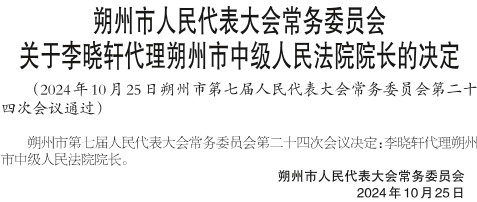 朔州市人民代表大会常务委员会关于李晓轩代理朔州市中级人民法院院长的决定