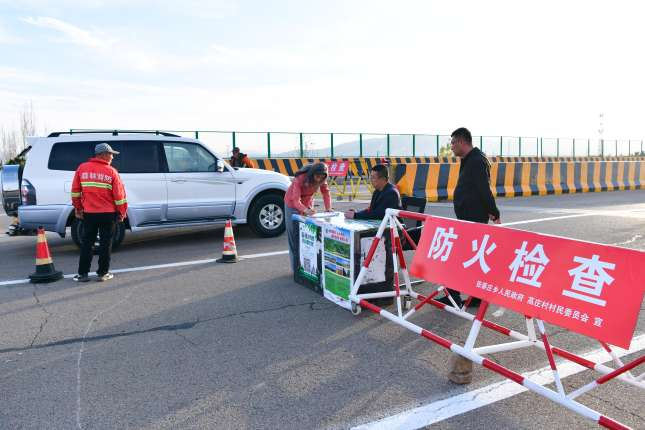 当前森林防火进入关键时期。为切实保护森林资源和人民群众生命财产安全,连日来,我市严阵以待、积极行动,采取“人防+物防+技防”的方式,扎实做好秋冬季森林防火工作,全力筑牢护林防火“安全网”。图为工作人员在西山生态森林公园护林防火检查点对进入林区的所有车辆和人员进行检查。 高文武摄影报道