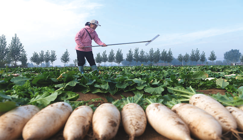 11月3日,河北省石家庄新乐市正莫镇正莫村农民在收获白萝卜。