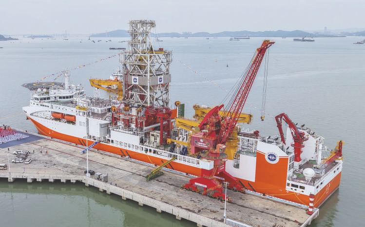 当 日,拥有 最 大11000米的钻深能力、我国自主设计建造的首艘大洋钻探船“梦想”号在广州正式入列,标志着我国深海探测关键技术装备取得重大突破。新华社记者 刘大伟摄