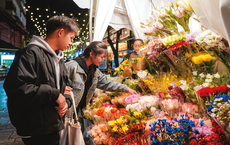 12月6日,游客在昆明市五华区景星街选购鲜花。近年来,昆明市不断丰富“夜经济”消费业态,打造特色夜市街区,开展多种夜间活动,丰富市民游客夜生活。 新华社记者 王静颐 摄