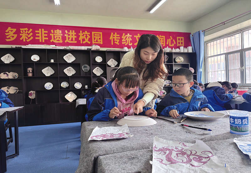 近年来,怀仁市第二中学校将中华优秀传统文化融入思政教育,积极打造传统文化特色课程,不仅丰富了学生们的校园文化生活,更为师生们提供了一个了解、学习和传承传统陶瓷文化的平台。图为学生在绘画社团课上用颜料在泥胚上作画,领略传统文化的魅力。 王晓丽 摄