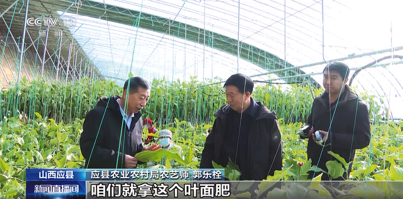 应县农业农村局农艺师郭乐栓在接受记者采访时说:“这几天低温来了,又降雪了,咱们这个叶片相对就比较薄了。咱们就拿这个叶面肥作为一种补充,那就能增强抗旱性。”这几天,应县的农技人员来到石庄村占地3000亩的现代化农业科技园区大棚内,仔细查看蔬菜长势。