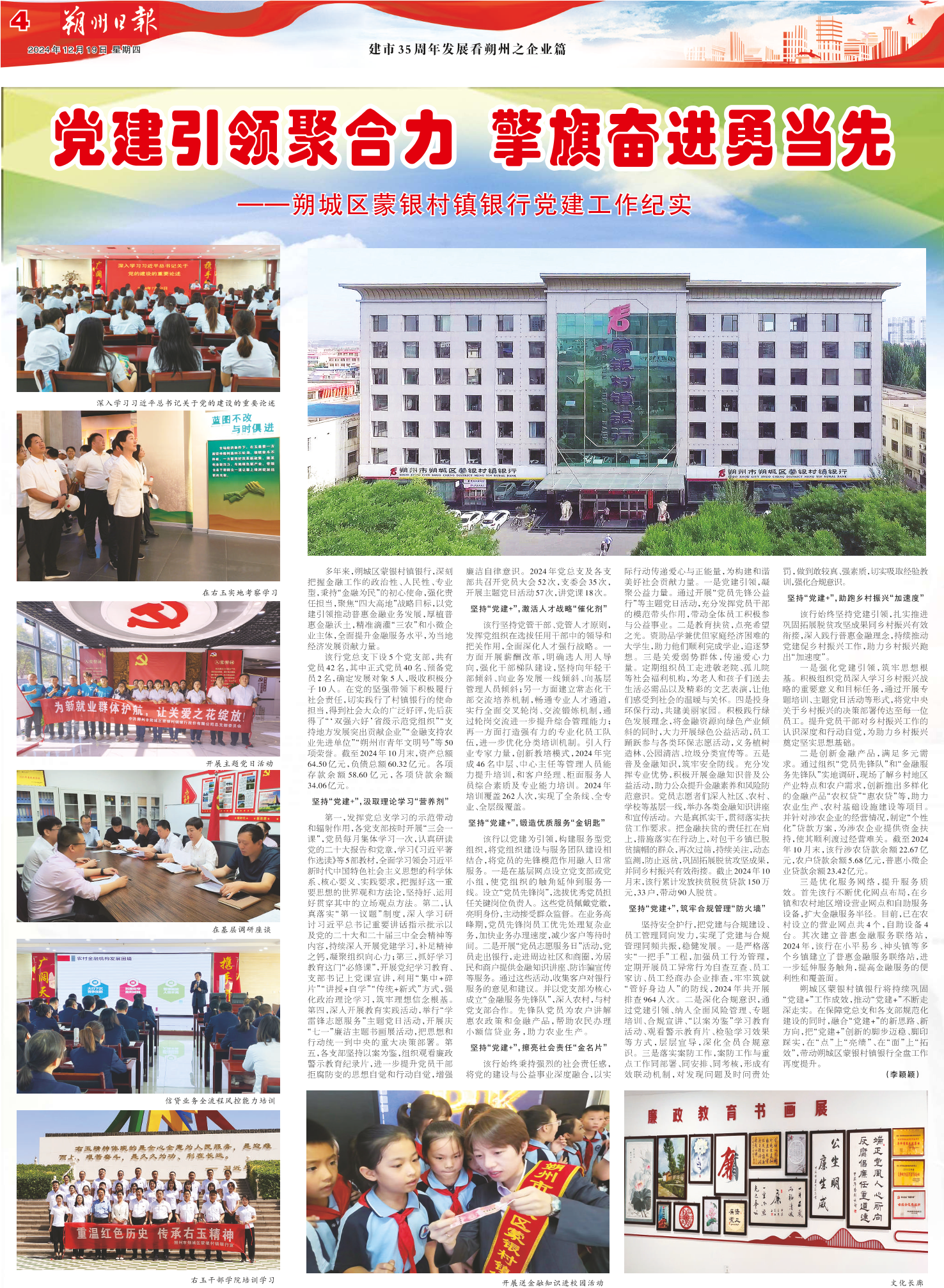 多年来,朔城区蒙银村镇银行,深刻把握金融工作的政治性、人民性、专业型,秉持“金融为民”的初心使命,强化责任担当,聚焦“四大高地”战略目标,以党建引领推动普惠金融业务发展,厚植普惠金融沃土,精准滴灌“三农”和小微企业主体,全面提升金融服务水平,为当地经济发展贡献力量。
