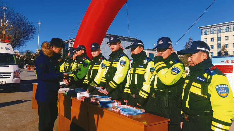 今年12月27日是《中华人民共和国反恐怖主义法》颁布九周年宣传日。为进一步增强广大群众反恐、防恐、识恐的安全意识,营造全民反恐的浓厚氛围,当天,我市各级公安机关组织开展了以“全民反恐 共创平安”为主题的系列宣传活动,切实提高群众的反恐防范意识。图为在朔城区政府广场,市公安局民警通过设置咨询台、发放主题宣传手册、展示宣传展板、剖析典型案例等形式向群众、商户普及反恐、防恐法律知识与应对常识。 赵福胜 摄