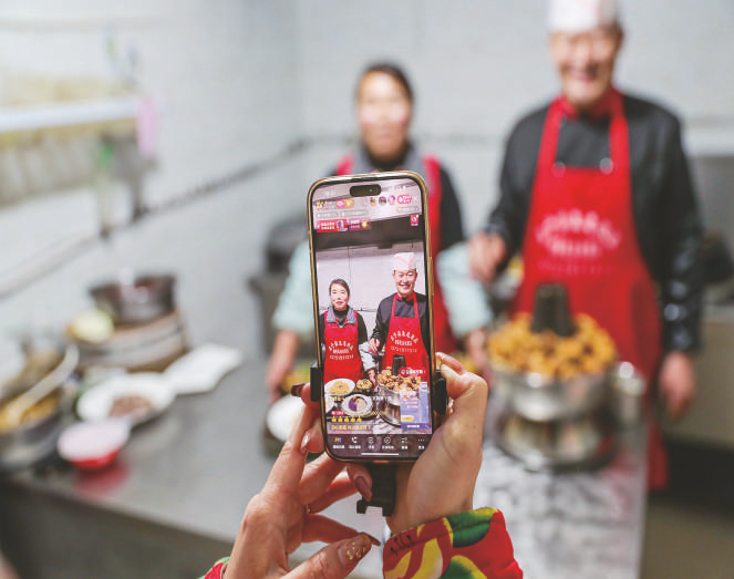 1月7日,在庆阳市环县洪德镇耿塬畔村,村民直播展示农家暖锅和蒸碗。春节将至,生活在甘肃省庆阳市陇东黄土高原庄子峁上的村民们拿起手机“新农具”,在直播间展示蒸馒头、做暖锅、炸油果果等制作年味特产的场景,吸引了众多网友下单购买。直播不仅带火了庄子峁的年味特产,也让更多人感受到这个黄土高原小村庄的别样魅力。 新华社记者 郎兵兵 摄