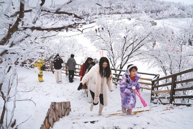 2月23日,在浙江省湖州市安吉县云上草原,人们登高欣赏雪景。近日,我国多地出现降雪天气,春雪飘落大地,神州处处美景。 新华社发 潘学康 摄