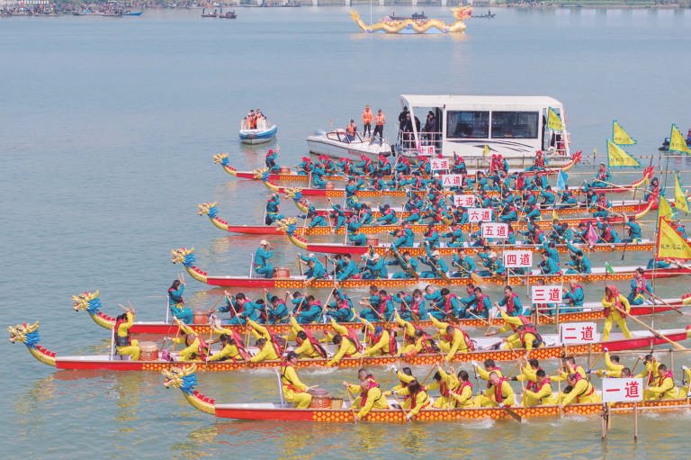 当日,2025泰州姜堰溱潼会船在江苏省泰州市姜堰区溱湖国家湿地公园开幕,五百多条各式船只和上万名会船选手飞篙走桨、弄潮击浪,演绎历久弥新的民俗画卷。