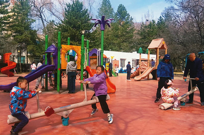 近日,位于市区的平朔公园春意盎然,吸引了众多市民游客踏青赏景。园内绿荫相映成趣,散步、打拳、赏花的游人络绎不绝,处处洋溢着和谐与温馨的氛围。图为孩子们在一处亲子乐园快乐玩耍。