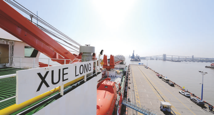 4月8日,“雪龙”号停泊在中国极地考察国内基地码头。当日,“雪龙”号极地科考破冰船返回上海,中国第41次南极考察队顺利完成主要任务。