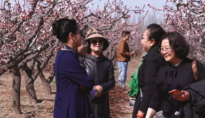 游客张雪琴是和朋友一起来的,她说,有时候在杏子熟的时候来摘杏,这个地方景色宜人,风景优美,天空也特别蓝,在往年杏花开的时候也来过,觉得杏花的花蕊特别漂亮。