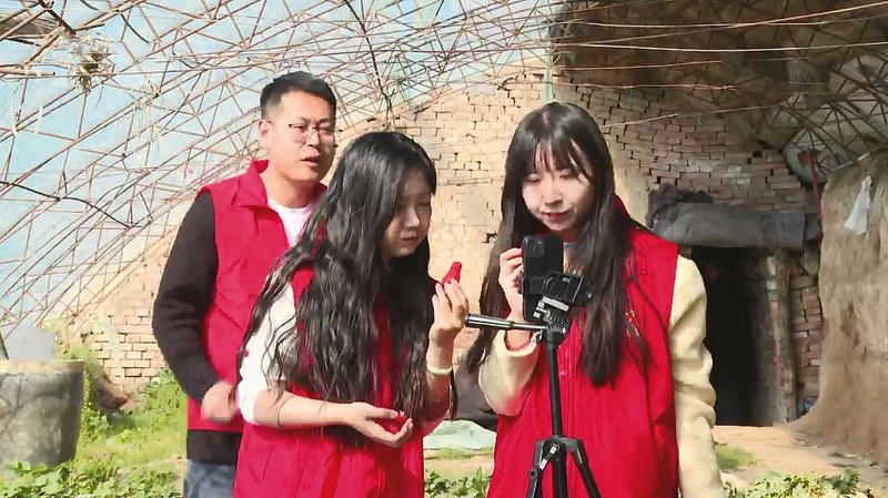 平鲁区白堂乡组织到村工作大学生化身“新农人”,以直播助农为切入点,推动农产品“出圈”,让“流量”变“销量”,为乡村振兴凝聚力量。 刘增 王丽花 摄