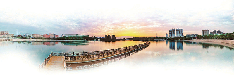 夕阳西下,七里河畔被落日余晖浸染,景象万千。