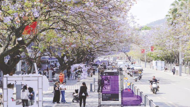 近日,四川省凉山彝族自治州西昌市的蓝花楹迎来盛花期,不少市民走上街头,感受这春日特有的“蓝紫色浪漫”。