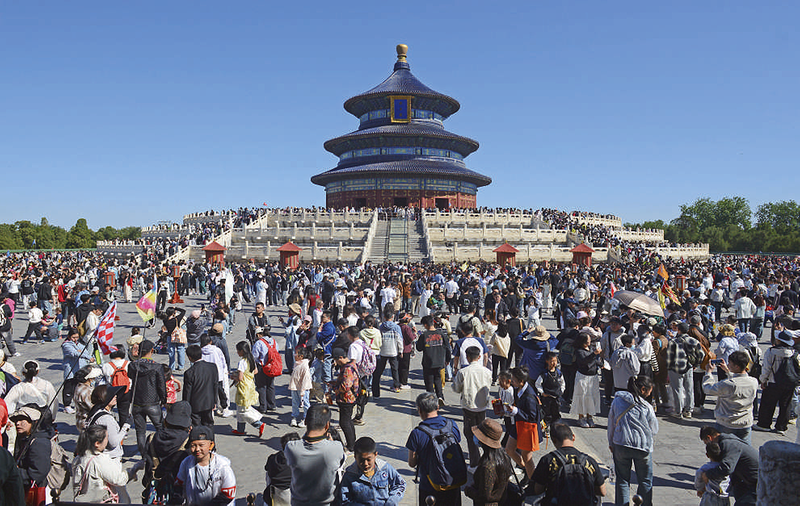 5月3日,北京天坛公园祁年殿前游人如织。文化和旅游部5月6日公布2025年“五一”假期文化和旅游市场情况。经文化和旅游部数据中心测算,假期5天,全国国内出游3.14亿人次,同比增长6.4%;国内游客出游总花费1802.69亿元,同比增长8.0%。 新华社发 王跃武 摄