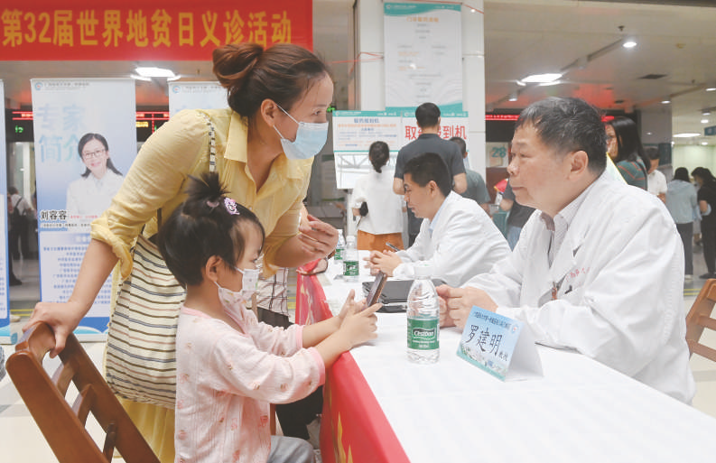 当 日 是 世 界地贫日,广西医科大学第一附属医院开展义诊活动,为地中海贫血患者及其家属提供咨询诊疗服务,并宣传地贫防控知识。