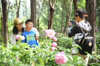 5月10日,游人在北京市平谷区东高村镇前台头村芍药花种植基地赏花拍照。近日,北京市平谷区东高村镇前台头村芍药花种植基地内的芍药花陆续开放,吸引游人前来赏花拍照。据了解,近年来前台头村积极探索“林下经济”发展模式,2025年栽植100余种优质芍药共计100000余株。