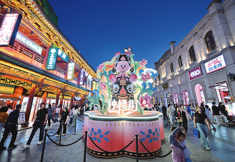 图为5月14日,游客在太原市钟楼街游览。夜幕降临,太原市钟楼街、食品街等特色街区及汾河两岸流光溢彩、游人如织。近年来,太原市不断丰富夜经济消费业态,开展多种夜间活动,打造集美食、观光、购物等于一体的夜经济消费圈,丰富市民游客夜生活。 新华社记者 詹彦 摄