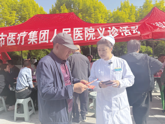 本报讯 近日,怀仁市医疗集团人民医院在该市人民公园正门前广场开展以“自我管理 守护健康”为主题的义诊活动。来自该院内科、外科、骨科、妇产科、中医科等多个学科专家及护理团队,为广大群众现场提供健康咨询服务。