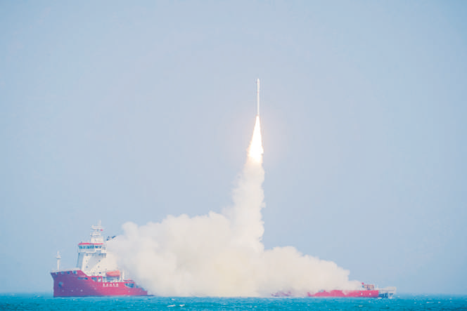 5月19日15时38分,我国太原卫星发射中心在山东附近海域成功发射谷神星一号海射型遥五运载火箭,搭载发射的天启星座05组卫星顺利进入预定轨道,飞行试验任务获得圆满成功。 新华社发 徐宝祥 摄