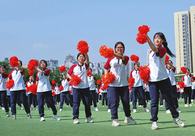 5月19日,重庆市二十九中学,同学们参加啦啦操大课间活动。