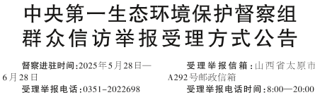 中央第一生态环境保护督察组 群众信访举报受理方式公告