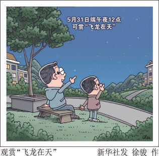 新华社南京电(记者 王珏玢 朱筱)5月31日迎来端午节。当晚9时左右,苍龙七宿的“龙头”角宿会升至正南中天,到午夜12时左右,整条苍龙的“龙形”会横亘在夜空中,亦称“飞龙在天”。