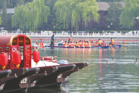 5月29日,2025中国大运河文化带京杭对话配套活动“河之端”龙舟赛在北京市西城区什刹海进行。