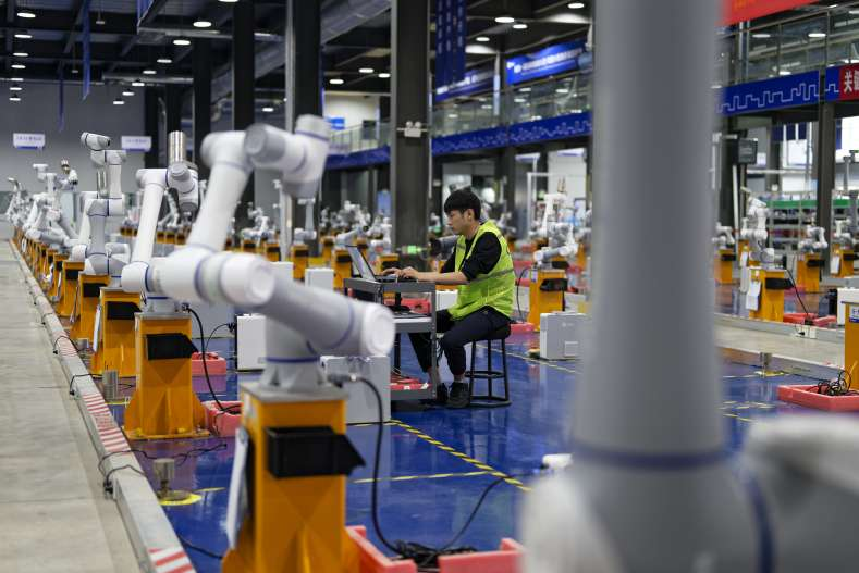 5月24日,山东省日照市经济技术开发区越疆机器人日照生产基地工人对机械臂产品进行测试。近年来,山东省日照市聚焦新质生产力发展,锚定高端化、智能化、绿色化,统筹推进新兴和未来产业起势成势,全力抓产业促转型。新华社记者张笑宇 摄