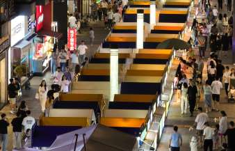 5月26日,人们在安吉昌硕街道一个网红街区闲逛。近年来,浙江安吉全力打造多元化夜间经济形态,通过创新业态、优化布局、完善配套等举措,激发消费活力。
