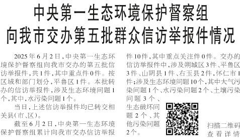 中央第一生态环境保护督察组向我市交办第六批群众信访举报件情况