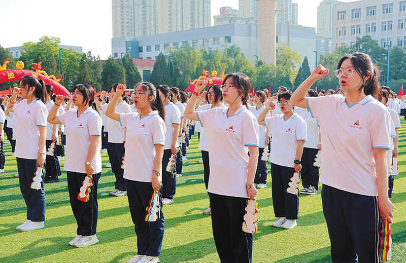 近日,怀仁一中举行“三年一中人 一生一中情”为主题的2025届学生十八岁成人仪式暨毕业典礼。“我以青春的名义宣誓……”在学生代表的带领下,怀仁一中全体毕业生高举右拳,以铿锵誓言回应时代召唤,深情告白祖国与学校,豪迈之声响彻操场。