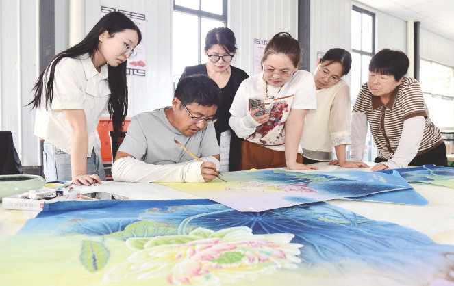 6月2日,在巨野县田桥镇东祝村书画院,农民画师在探讨交流工笔画创作。近年来,“中国工笔画之乡”山东省菏泽市巨野县积极发展乡村文化创意产业,设立专项资金扶持书画创作,并开展农民画师免费培育工程。目前,巨野县有8个绘画专业镇、50个绘画专业村、65家基层画院,工笔画已成为当地乡村振兴的新引擎。 新华社记者 郭绪雷 摄